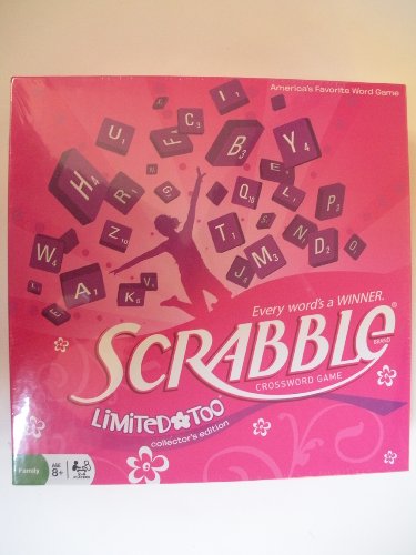 America's Favorite Word Game has gone shopping with the Limited Too Edition of SCRABBLE! It's A Girl World and the classic SCRABBLE crossword game is now played on a beautiful pink game board and includes a special bonus word list to help you score big points and have more fun! Fun Flower Shaped Game Board 4 Purple Tile Racks 100 PURPLE Tiles 1 Letter Bag Instruction and 50 Word Bonus Dictionary